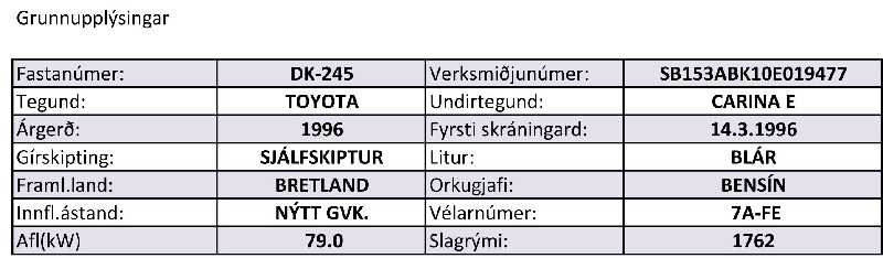 Toyota CARINA - Aðrir varahlutir úr þessu ökutæki